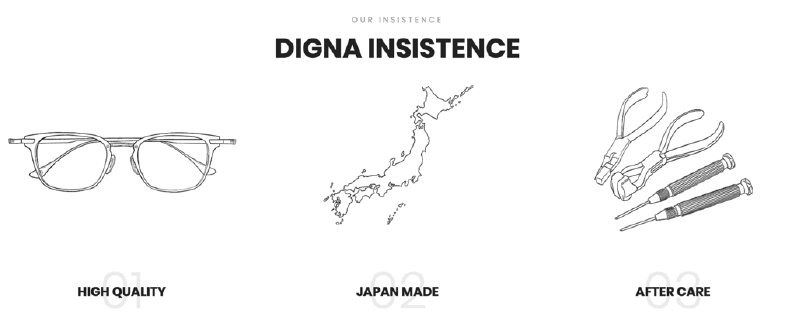 「DIGNA Classic」は世界最高峰の品質を持つ日本製眼鏡の95%以上が生産されている、福井県鯖江市に自社工場を構え、100年を超える歴史を持つ工場にて熟練の職人により丹精に作られています。