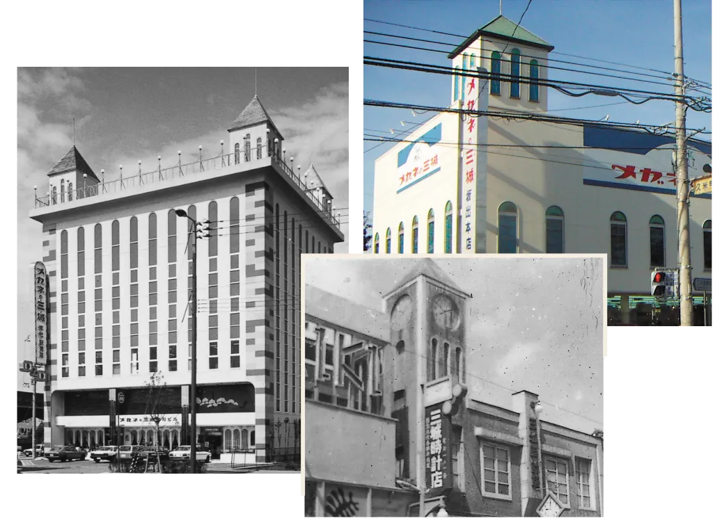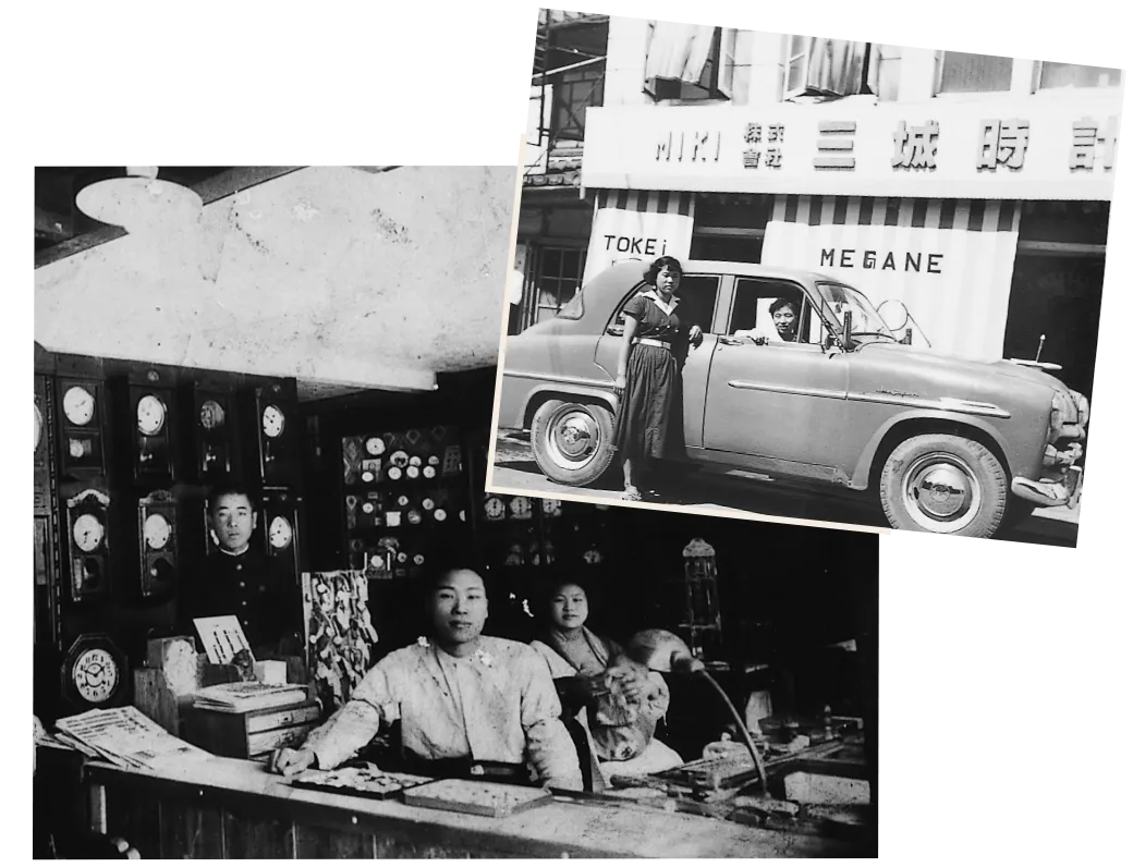 世界大恐慌を機に、三城創業者・多根良尾は、超優良企業の東洋紡績を退社し、時計店を創業します。時代はまさに工業化社会への転換期であり、そこで必要になるのが時計。当時はまだ高価だった時計を分割で購入する仕組みをつくるなど、新しいサービスでお客さまのニーズに応えていきます。