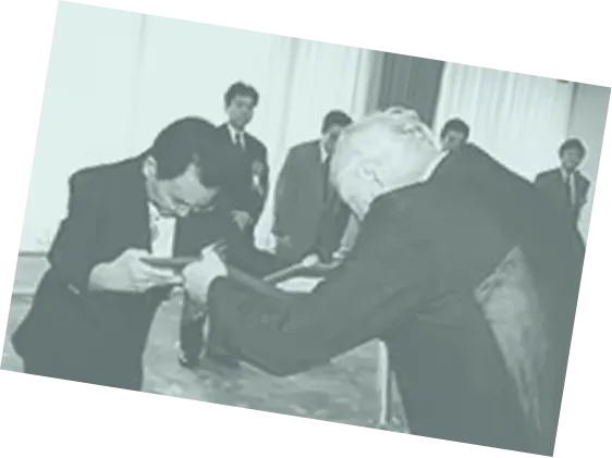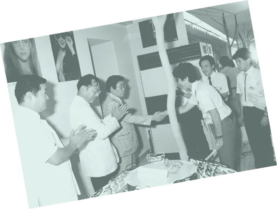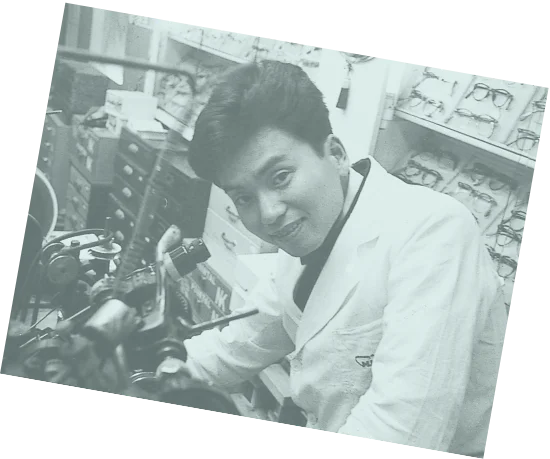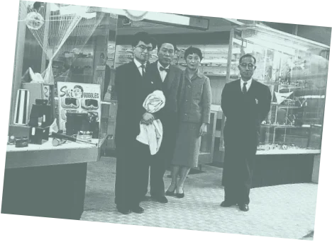 1960年代初め、それまでのラジオに代わり、テレビがマスメディアの主役に躍り出ます。これは現在まで続く、視覚を中心とした情報化時代の幕開け的な出来事でした。いち早く訪米し、メガネの将来性を確信した多根裕詞(当社前会長)は、眼鏡専門店として再創業を果たします。視力測定の充実、高額であった輸入フレームの価格破壊、郊外店の展開など、時代に合わせてさまざまなお客様の問題解決に挑戦していきます。