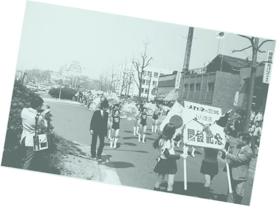 世界大恐慌を機に、三城創業者・多根良尾は、超優良企業の東洋紡績を退社し、時計店を創業します。時代はまさに工業化社会への転換期であり、そこで必要になるのが時計。当時はまだ高価だった時計を分割で購入する仕組みをつくるなど、新しいサービスでお客さまのニーズに応えていきます。