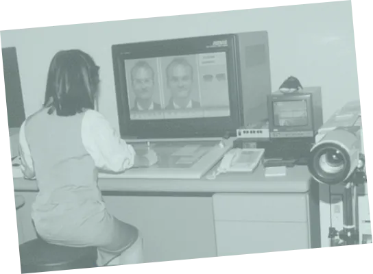 1990年に全店舗へ当時最先端のPCベースPOSシステムを導入するなど、いち早くデジタル化に舵を切ります。さらにAI搭載の「ミキシムデザインシステム」により、一人ひとりに合わせたメガネ作りを推進します。