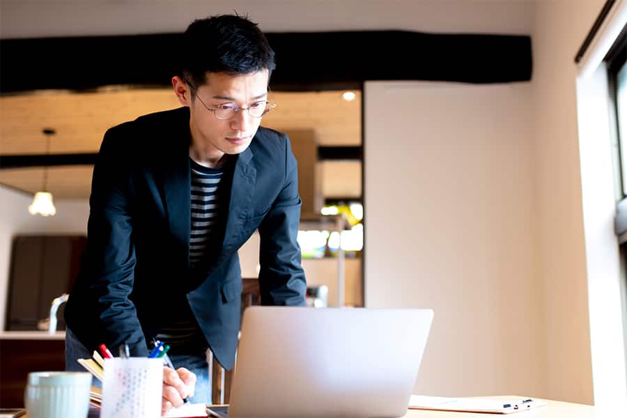 スーツスタイルで仕事をされる方は、かっちりとした雰囲気に馴染むチタン素材やスクエアタイプを選ぶのがベターです。