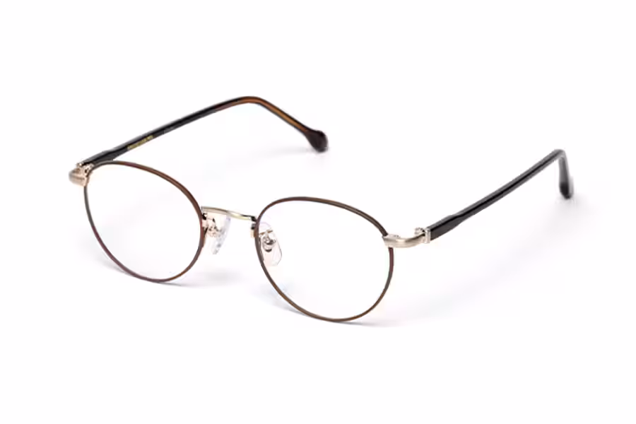 落ち着きのあるカラーリングが魅力のボストンシェイプフレームです。上質感のある、ゴールドとブラウンを基調としたデザインなので、落ち着きのある大人の印象を与えながらも、柔らかな印象を与えることができます。接客業の方や、立場上部下とよく話す方など、周囲にあたたかな印象を与えたい男性におすすめです。