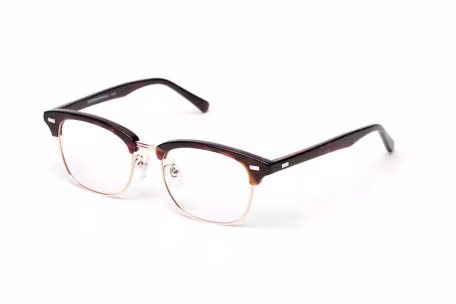 コンビネーションフレームとは、プラスチックとメタル、2つの素材を組み合わせたフレームのことです。カジュアルな印象が強いプラスチックと、洗練された印象を与えてくれるメタルの2素材が共存しているのが魅力です。