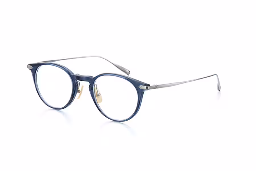 さわやかなブルーのリムとしなやかなチタンが上品なボストンフレームです。柔らかすぎず、誠実な印象を与えながらも、おしゃれさも同時に演出してくれるフレームです。