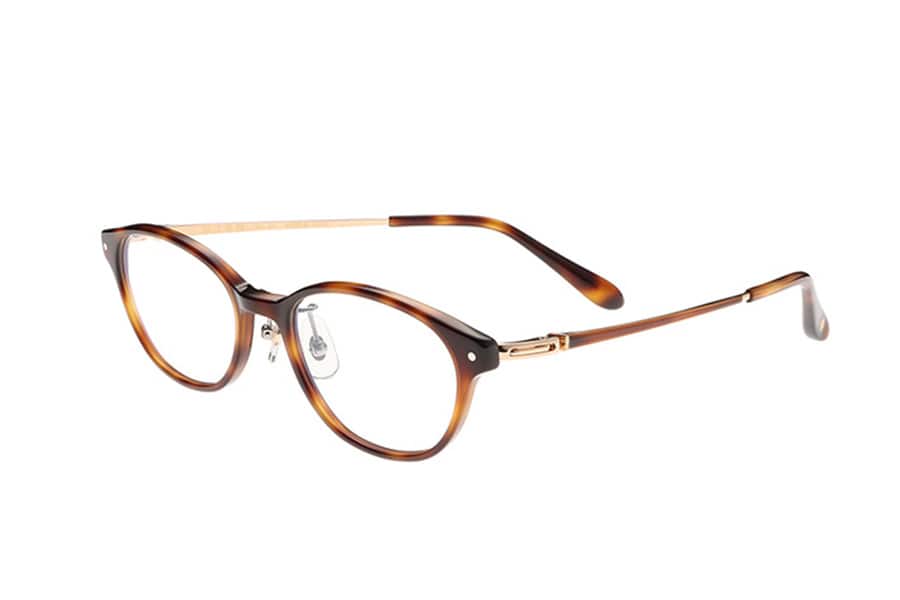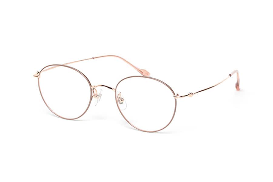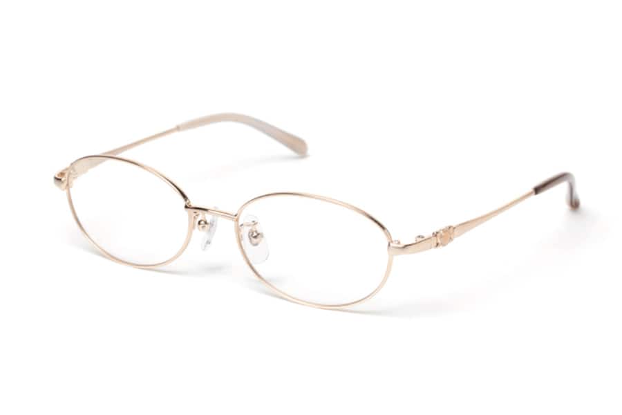 「Maison de FLEUR MDF-001」は、スタンダードなメタルフレームでありながらも、クールすぎず落ち着いた印象を与えます。また、テンプル丁番部には七宝とリボンがほどこされており、かわいらしいワンポイントとなっています。