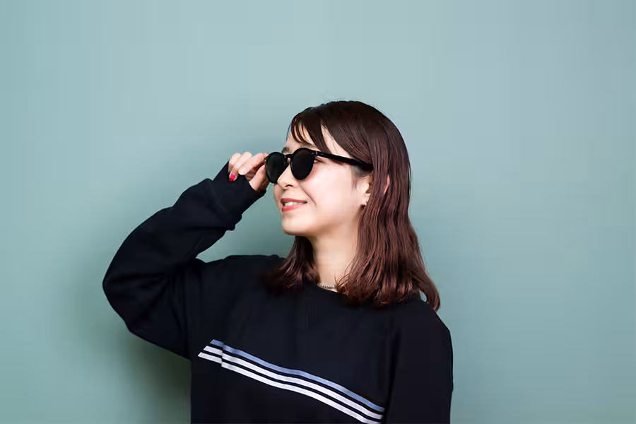 なお、サングラスをかけた状態で鏡を見ると、レンズの色を通して自分の像を見ることになるため、他者から見たときよりもレンズカラーが濃く感じられます。鏡を見て「レンズの色が濃いな」と感じても、周囲からはそこまで濃い色には見えていないので、あまり気にしないでくださいね。
