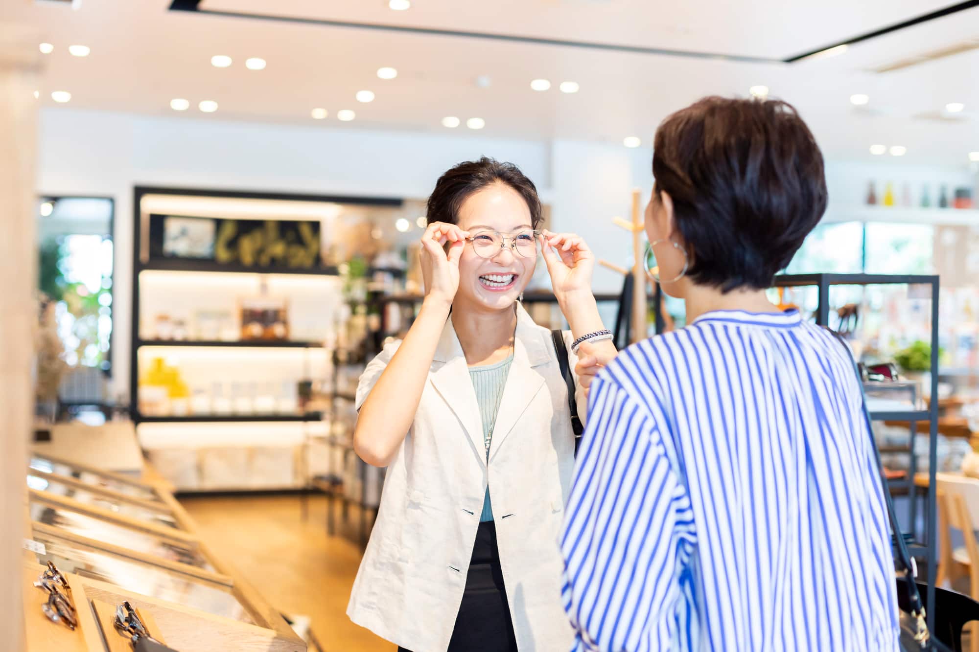 フレーム選びに迷ったら、その場にいる店員さんにどんどん相談するようにしましょう。悩みを伝えたうえで、思い切って「これ、似合っていますか?」と尋ねてみるのも大丈夫。用途や目的、今のメガネに関するお困りごとを伝えれば、用途や目的にあったアドバイスと提案を受けられるでしょう。