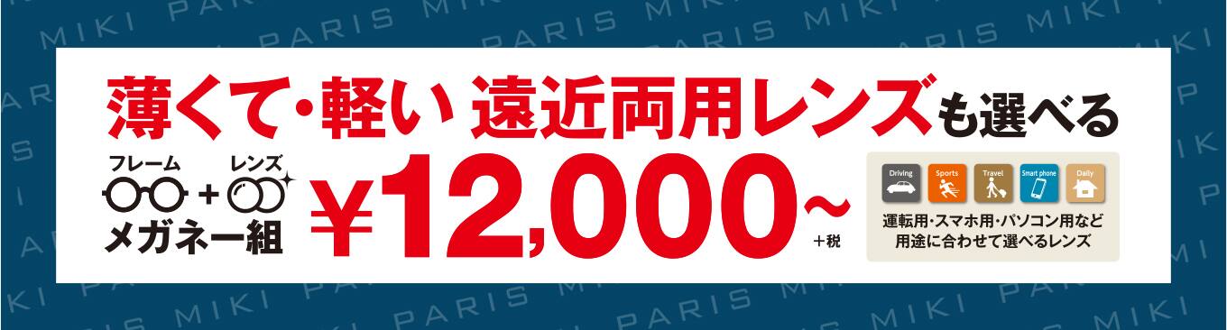 ミキの新価格は、超うす型非球面レンズや超うす型遠近両用が選べて本体価格1組¥12,000!