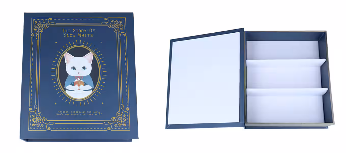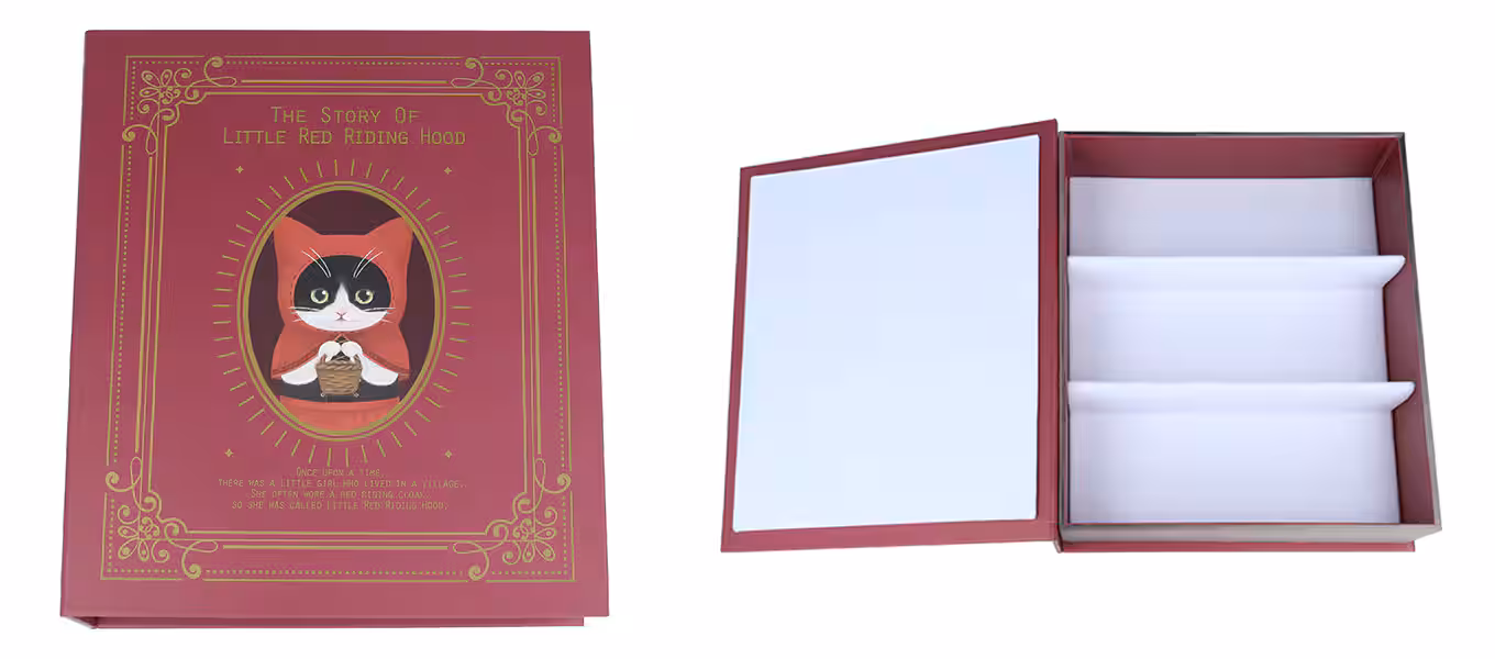 童話をモチーフにしたクラシックな世界観のブック型収納ボックス。 赤色はハチワレの猫さん、青色は白猫さんがそれぞれ表紙になっています。 メガネフレームだけでなく、サングラスやファッション小物の収納も可能です。