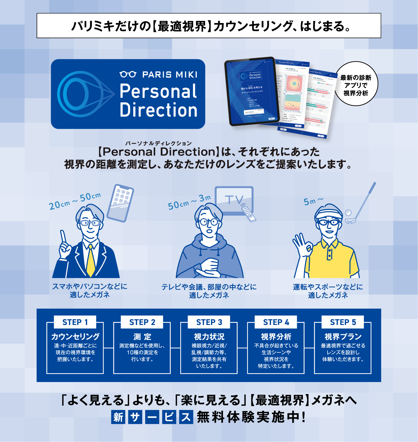 パリミキでは単に視力を上げるのではなく、生活のそれぞれのシーンに適した見え方【最適視界】で暮らすという考え方をおすすめしています。