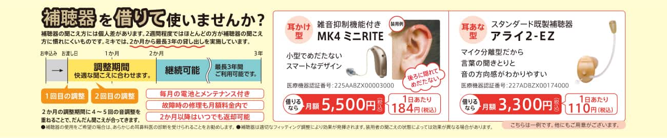 月額 税込¥3,300より、定額にて補聴器を貸し出しいたします。