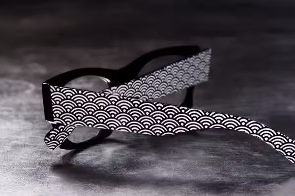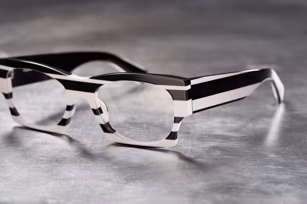 昔の映画で、おしゃれでスノッブな登場人物たちが、カクテルラウンジでかけていたような大胆なストライプ柄は、リーディンググラスだからこそ試してみたい。無難に転びがちのモノトーンファッションを輝かせてくれる。久々のナイトクラビングや、ライヴコンサート、海外のアート展巡りなど、気合いを入れたいときのファッションアイテムとして、使い倒すべし。