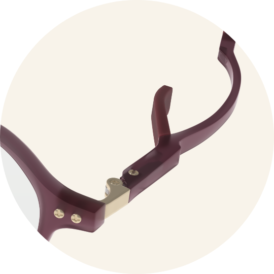 POWANT(ポワント)は「こめかみホールドアーム」により、お顔の横から包み込むようにメガネを支えます。