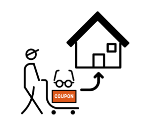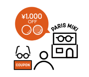 店舗でお使いいただける「レンズ¥1,000オフクーポン」をフレームと一緒にお届けいたします。