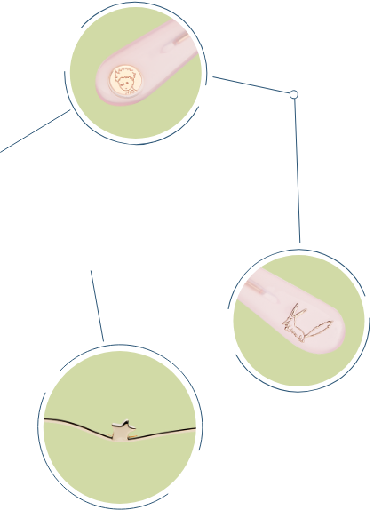 ヒツジの後ろから、つるの芯に刻まれた星模様がさり気なくのぞく