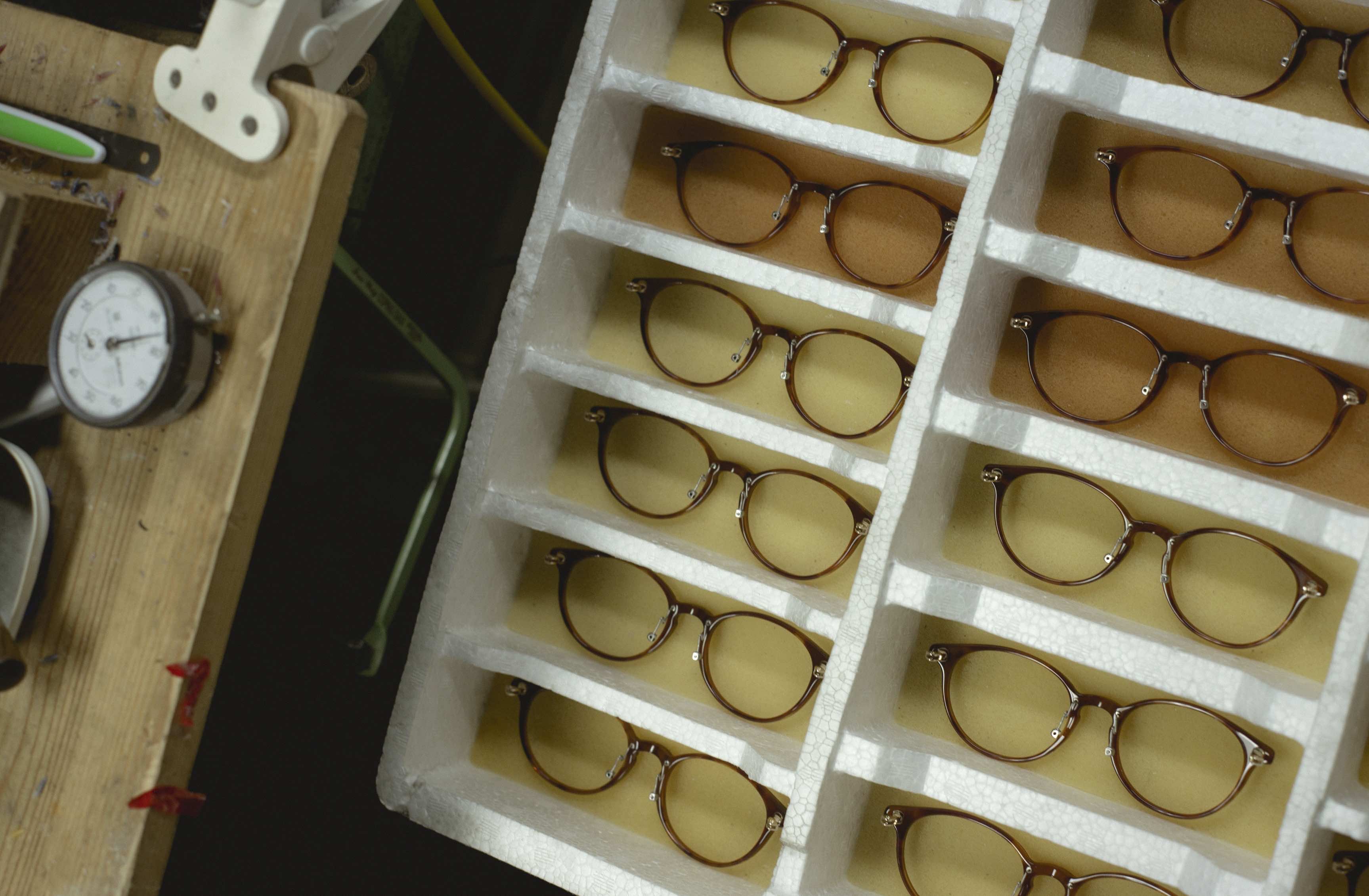 日本はもとより海外でも高い評価を得ている鯖江産めがね。「日本ならではの技術を活かし、素材も質の高い日本製を選ぶ」。そのため海外製の2倍、約250工程を経てひとつのめがねがつくられます。