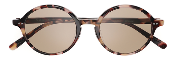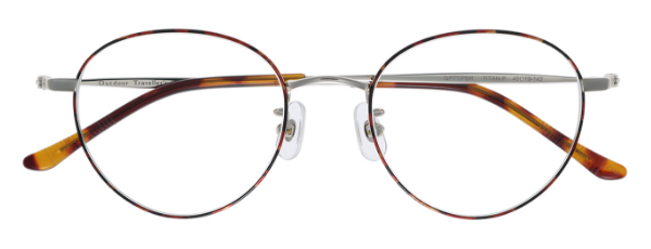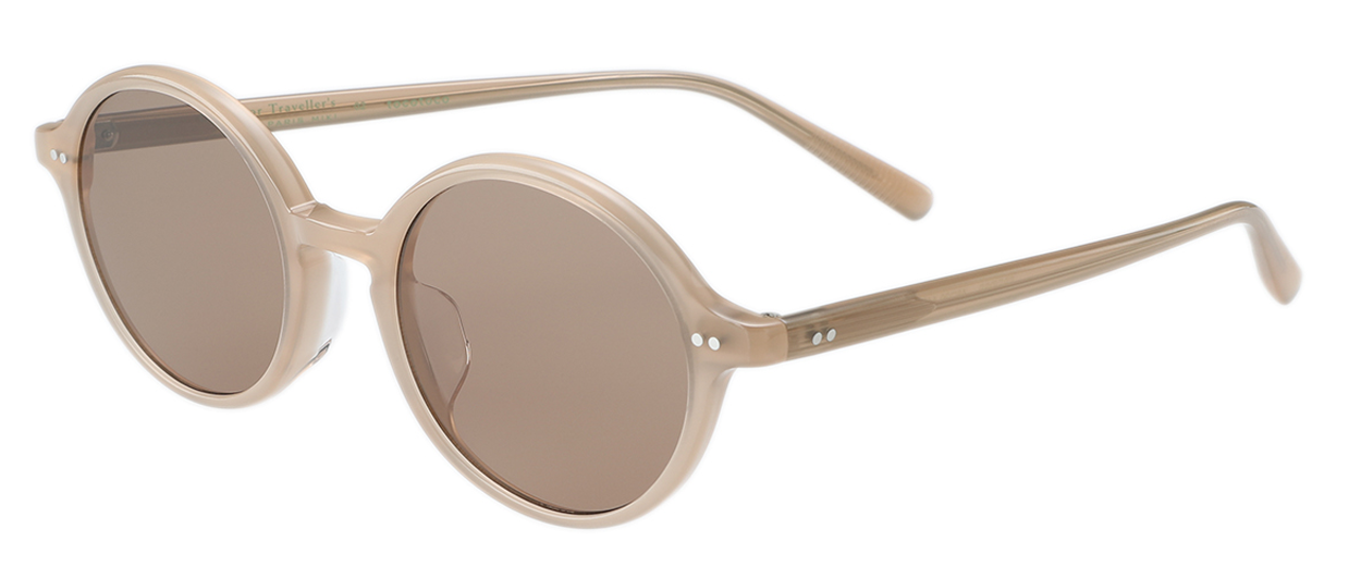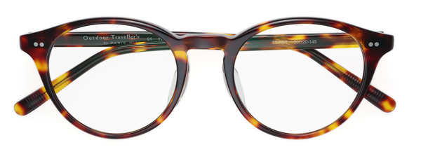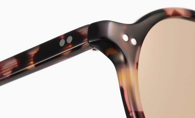 フロント側もテンプル側も2点のカシメで蝶番を固定した丈夫な作りで、流行のクラシカルなデザインに。