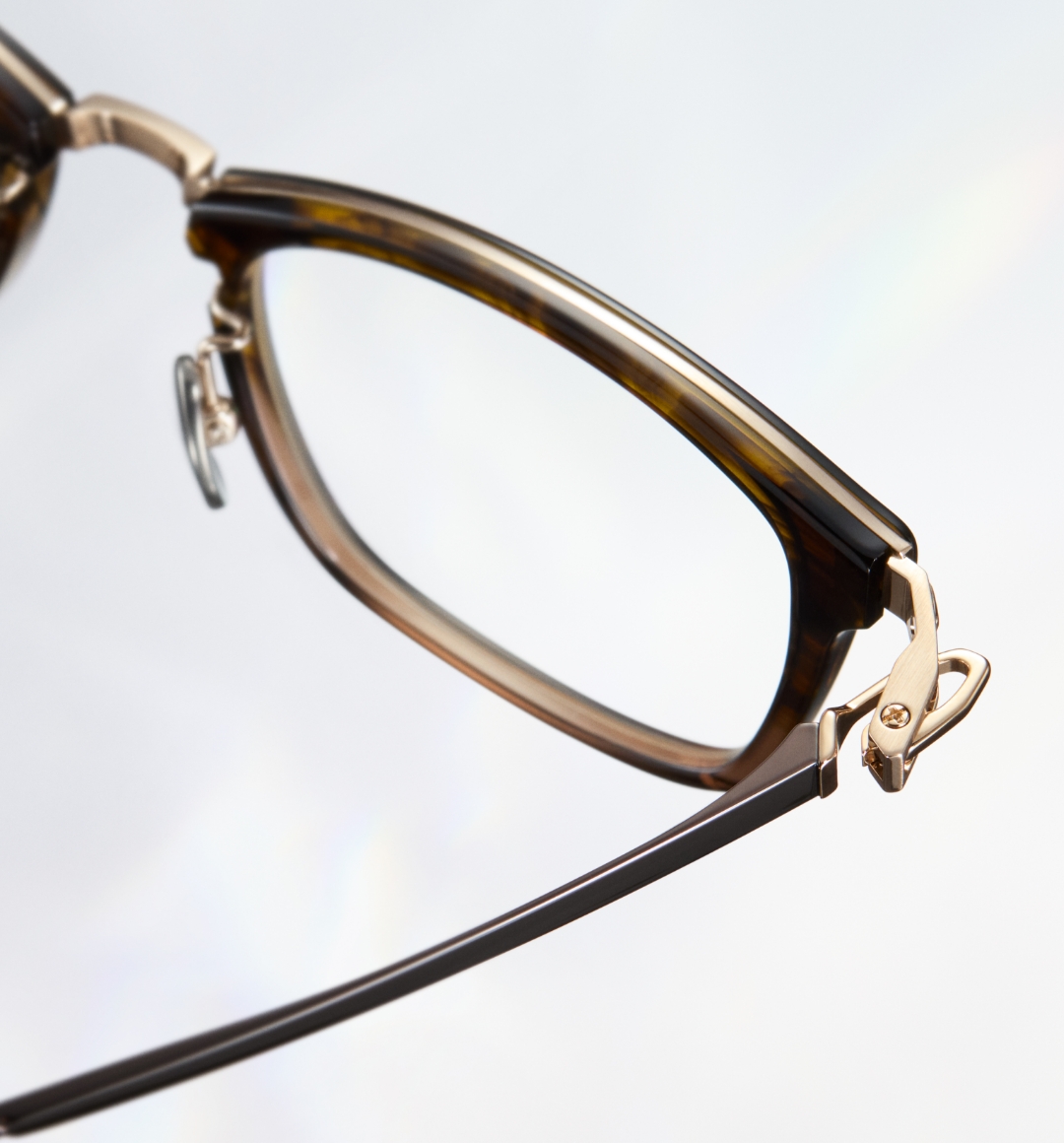 「0.01ミリのこだわり」。機械では創り上げる事ができない、熟練工の手仕事。1917年の創業時から受け継がれる、確かな技術で生まれた「鯖江光器」。掛け心地に影響を及ぼすヨロイ部分には、専用のバネを仕込み、顔の形にフィットする“究極の掛け心地”を実現しました。