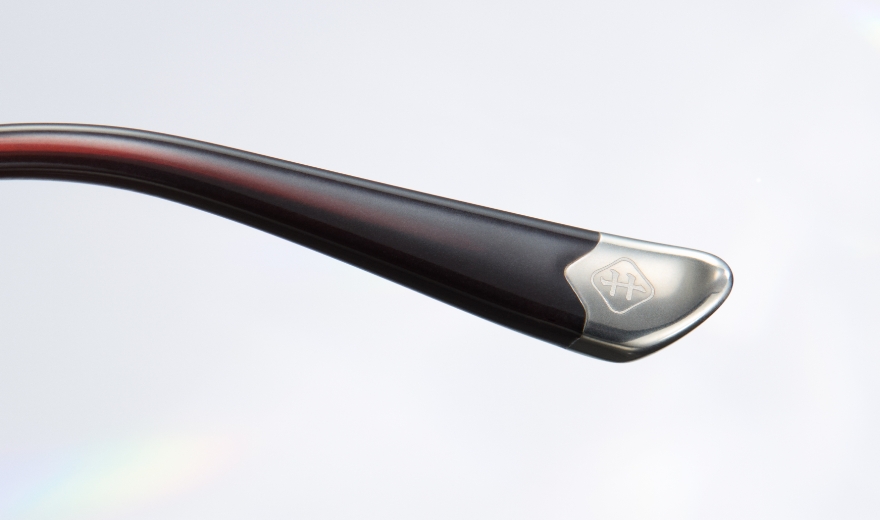 テンプルエンドや鯖江光器専用鼻パッドに刻み込まれたブランドアイコンは、鯖江光器のすべてのモデルに受け継がれている。