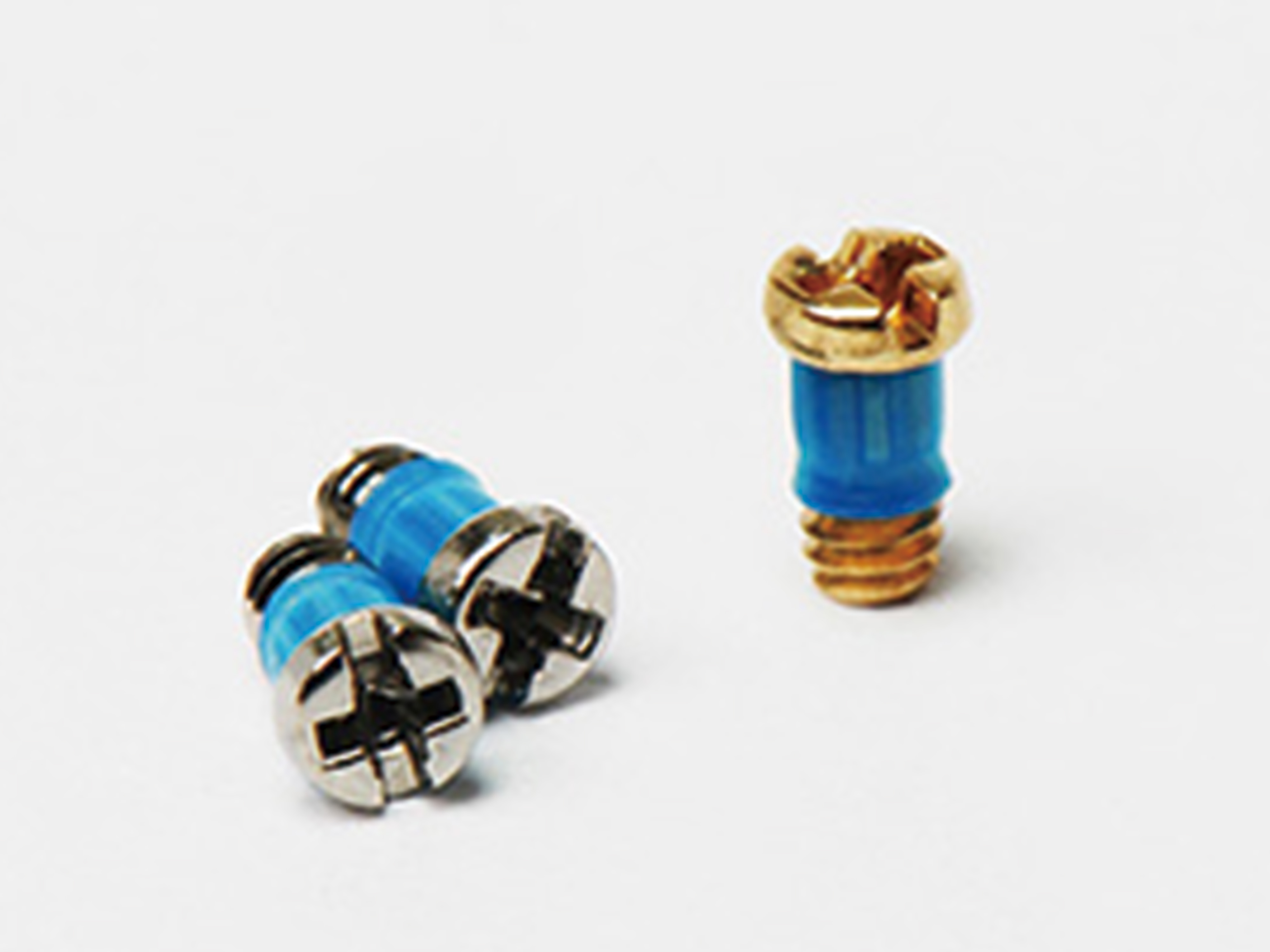 日本・鯖江の技術が詰まった、緩みにくいブルーの樹脂のついたメガネ用ネジ。style J の全モデルに採用されています。
