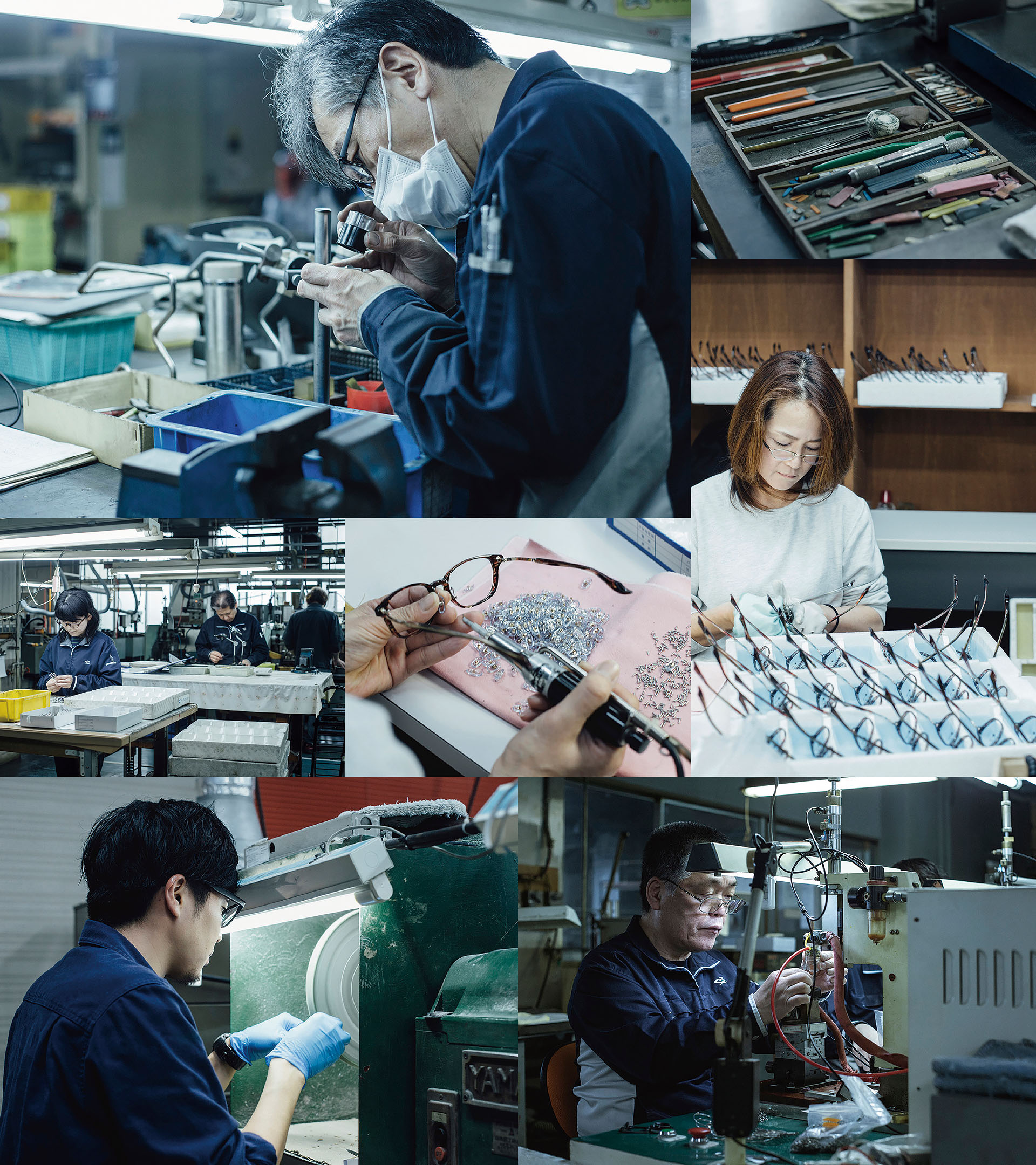 明治時代後期からはじまった鯖江の眼鏡製造。時を経て、その高い技術と品質は、日本のみならず広く世界に知られることとなる。現在も有名ブランドメーカーから厚い信頼を得ており、世界の20%のシェア、日本製とされるフレームの95%以上の眼鏡フレームが鯖江製となっている。近年は後継者不足から事業所や職人の減少もみられるが、評価は変わらず注文が途切れることはない。繊細で卓越した技術をもつ眼鏡職人は、自分たちが受け継いできたものが後世に引き継がれていくことを願いながら、今日もひとつひとつ手作業で、妥協のない「真の日本製眼鏡」を製造し続けている。