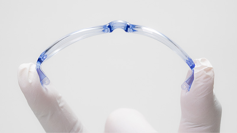曲げても元の形状に戻ろうとする、超弾性の樹脂を採用しており、軽量かつやわらかく衝撃にも強いです。