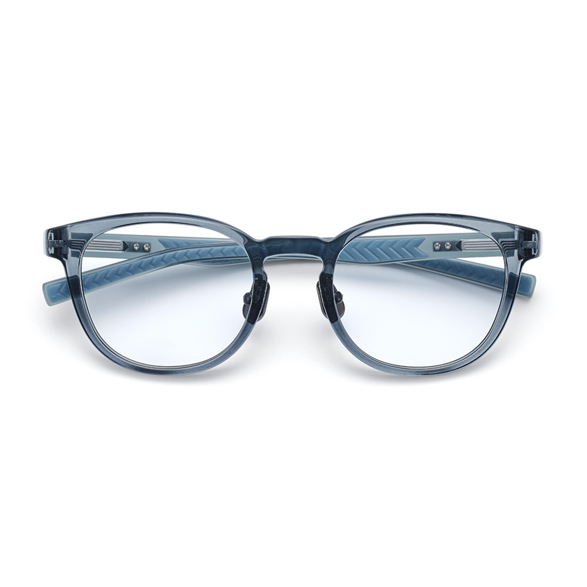 テンプル内側とチタンパッドの表面にはラバー素材を使い、滑りにくくなっています。