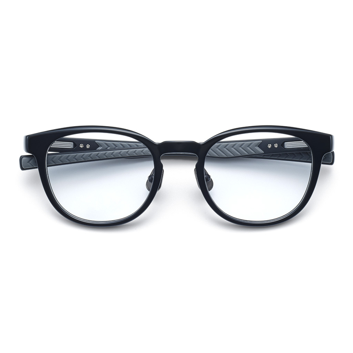 テンプルにβチタンのバネ機構を設け、掛けやすく変形しにくい仕上がりに。