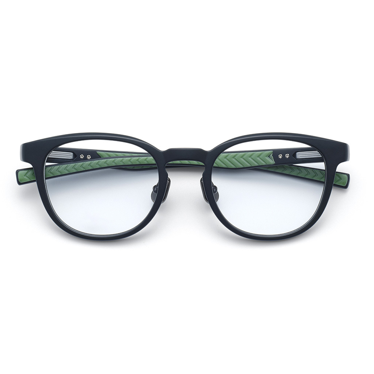 テンプルにβチタンのバネ機構を設け、掛けやすく変形しにくい仕上がりに。