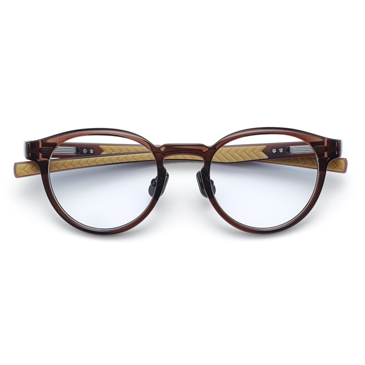 テンプル内側とチタンパッドの表面にはラバー素材を使い、滑りにくくなっています。
