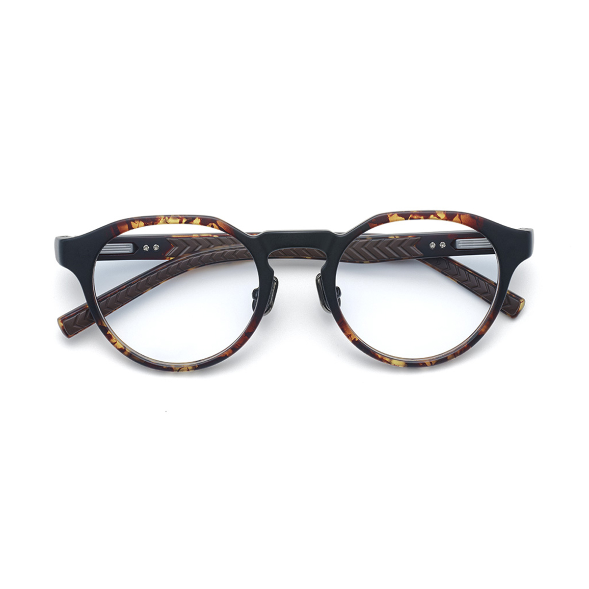 テンプルにβチタンのバネ機構を設け、掛けやすく変形しにくい仕上がりに。