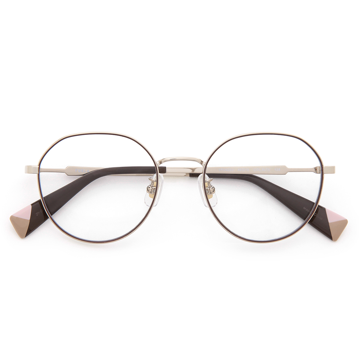 一段低くなったレンズ側にはテンプルと同色のカラーリングを施しています。