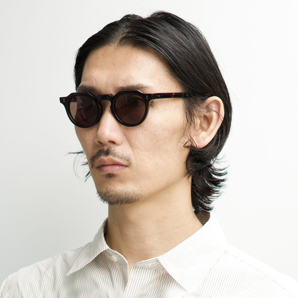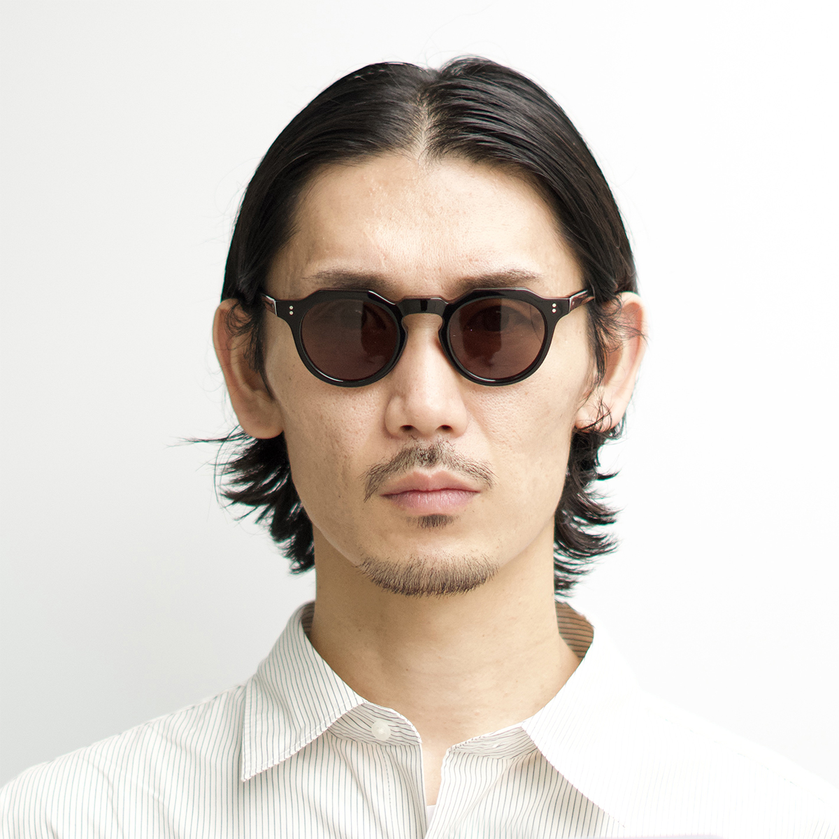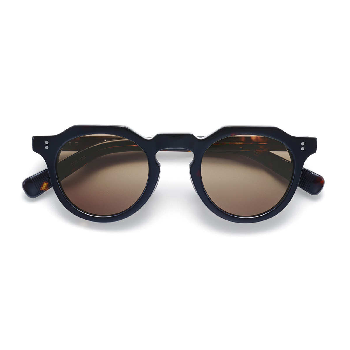 テンプルにもクラシカルなライン状の飾り芯を入れると共に、テンプル丁番を本格的なカシメ留めにし、右テンプル内側にダブルスクエアのリベットを施しました。