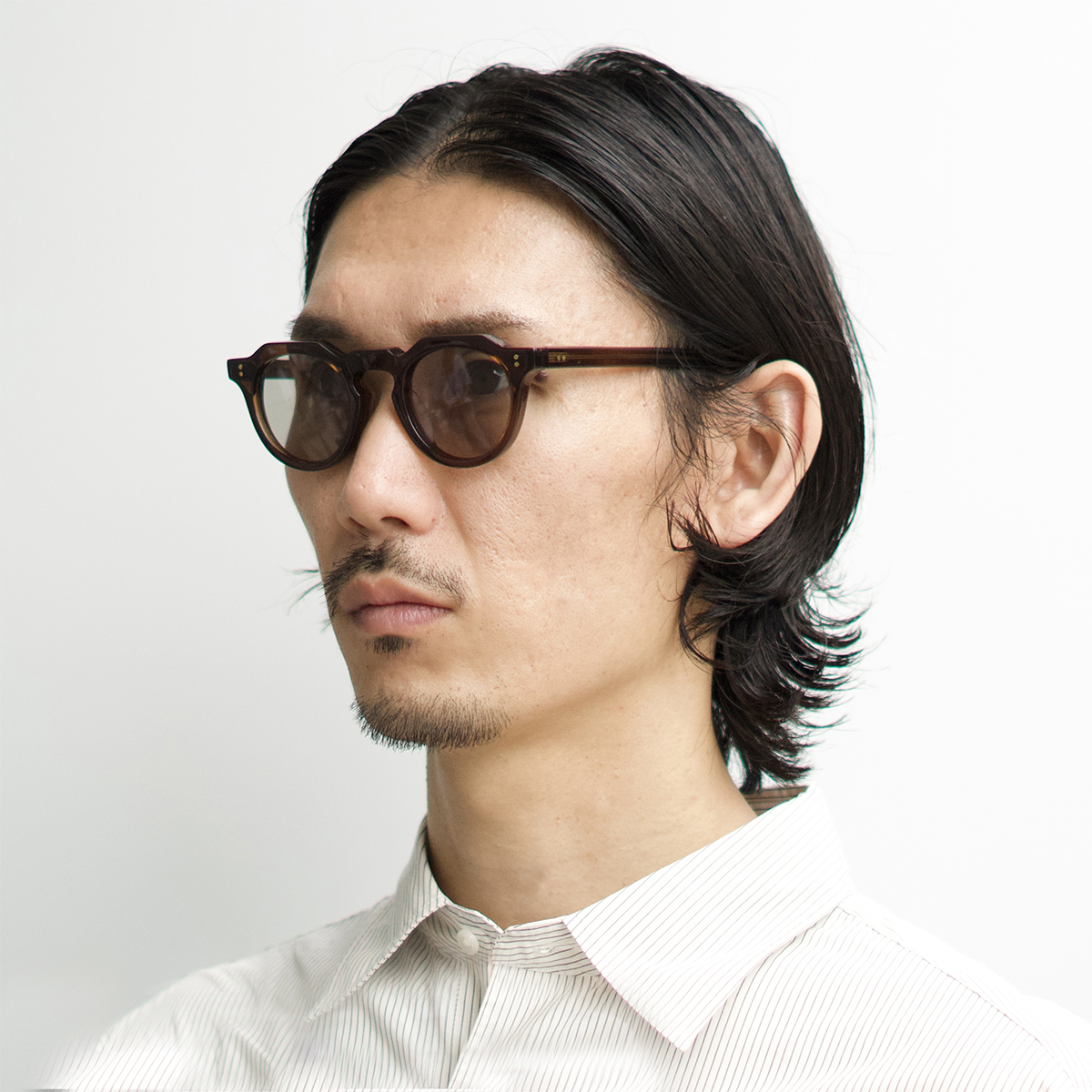 テンプルにもクラシカルなライン状の飾り芯を入れると共に、テンプル丁番を本格的なカシメ留めにし、右テンプル内側にダブルスクエアのリベットを施しました。