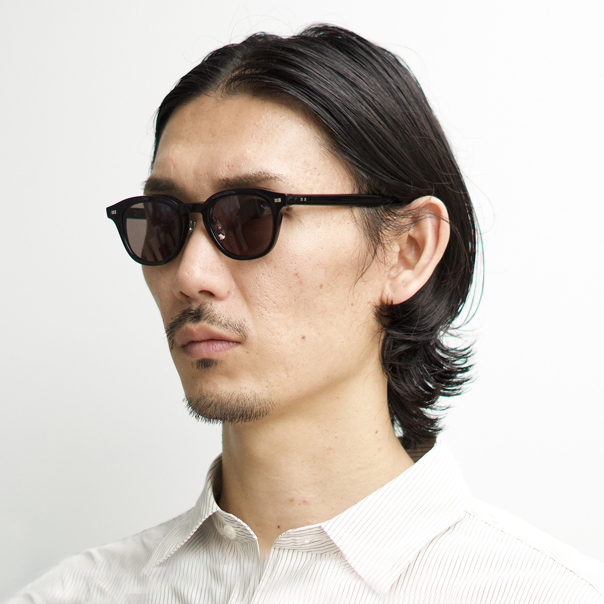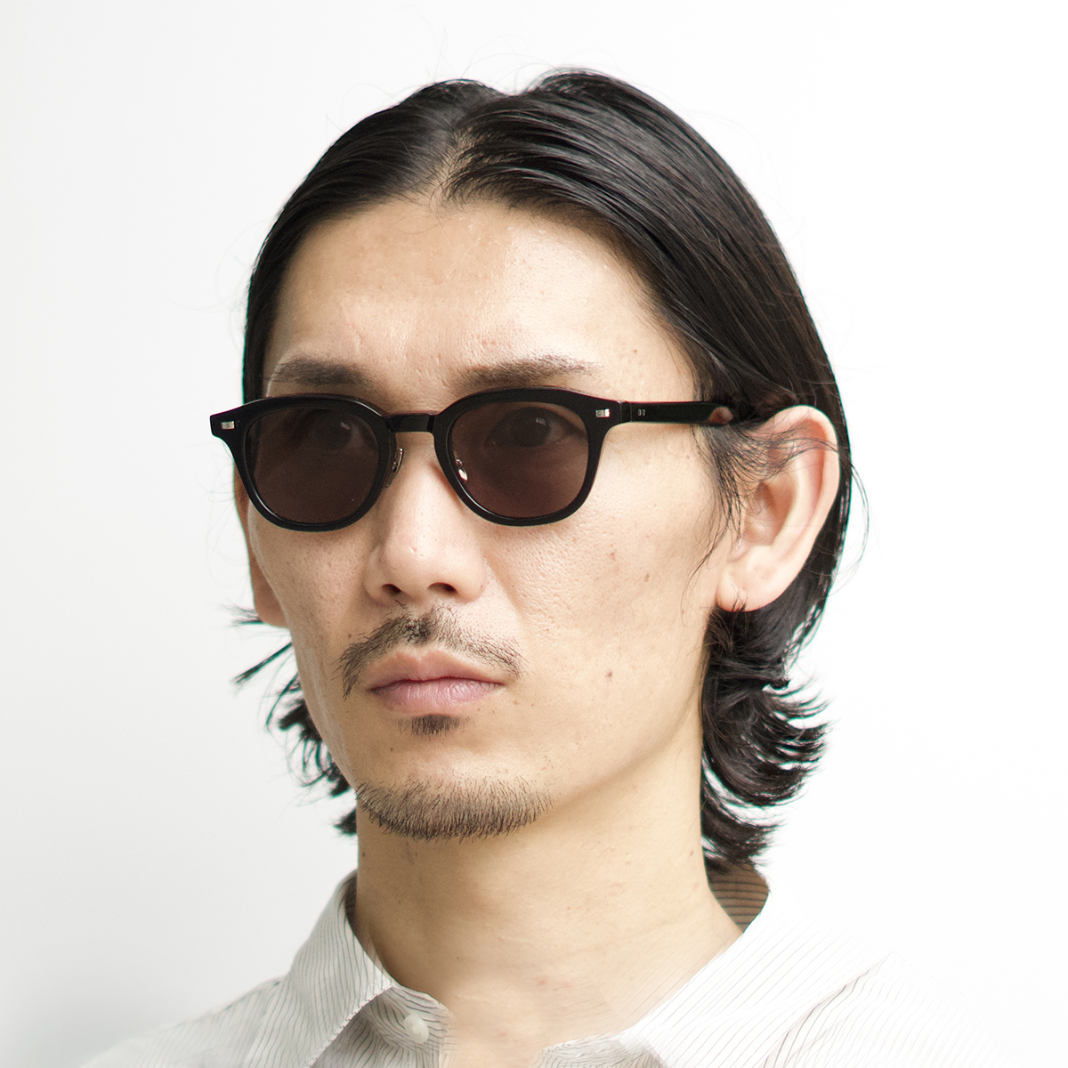 クラシックなウェリントンのレンズシェイプと小さめのキーホールカットで、