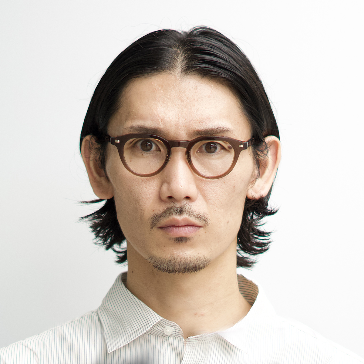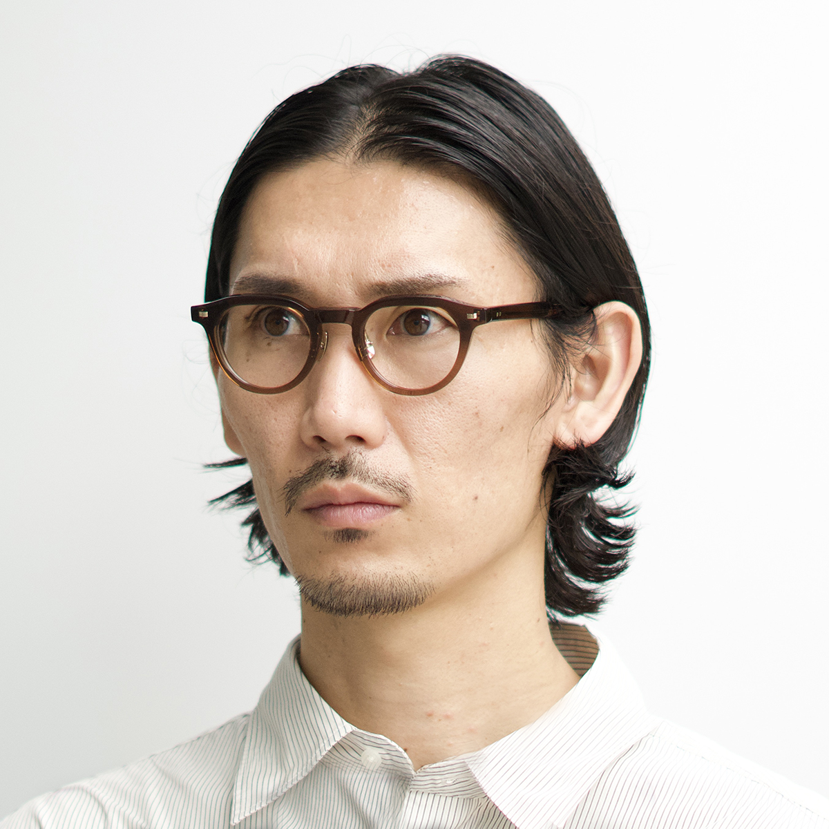 シャープなクラウンパントのレンズシェイプと小さめのキーホールカットで、