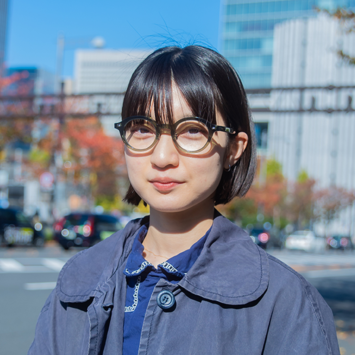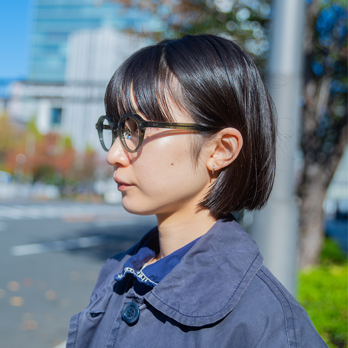 ラウンドとボストンをミックスしたレンズシェイプと小さめのキーホールカットで、