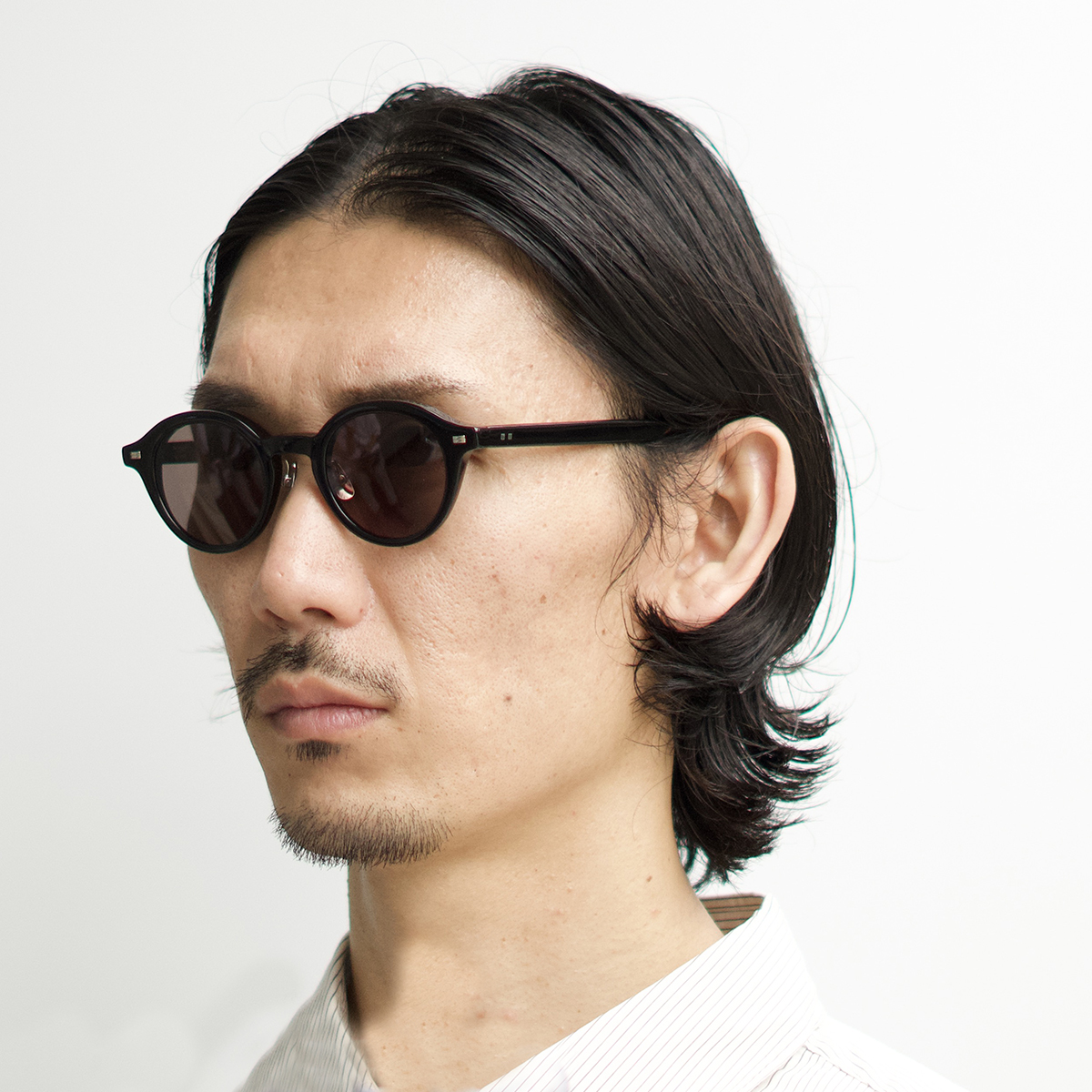 ラウンドとボストンをミックスしたレンズシェイプと小さめのキーホールカットで、