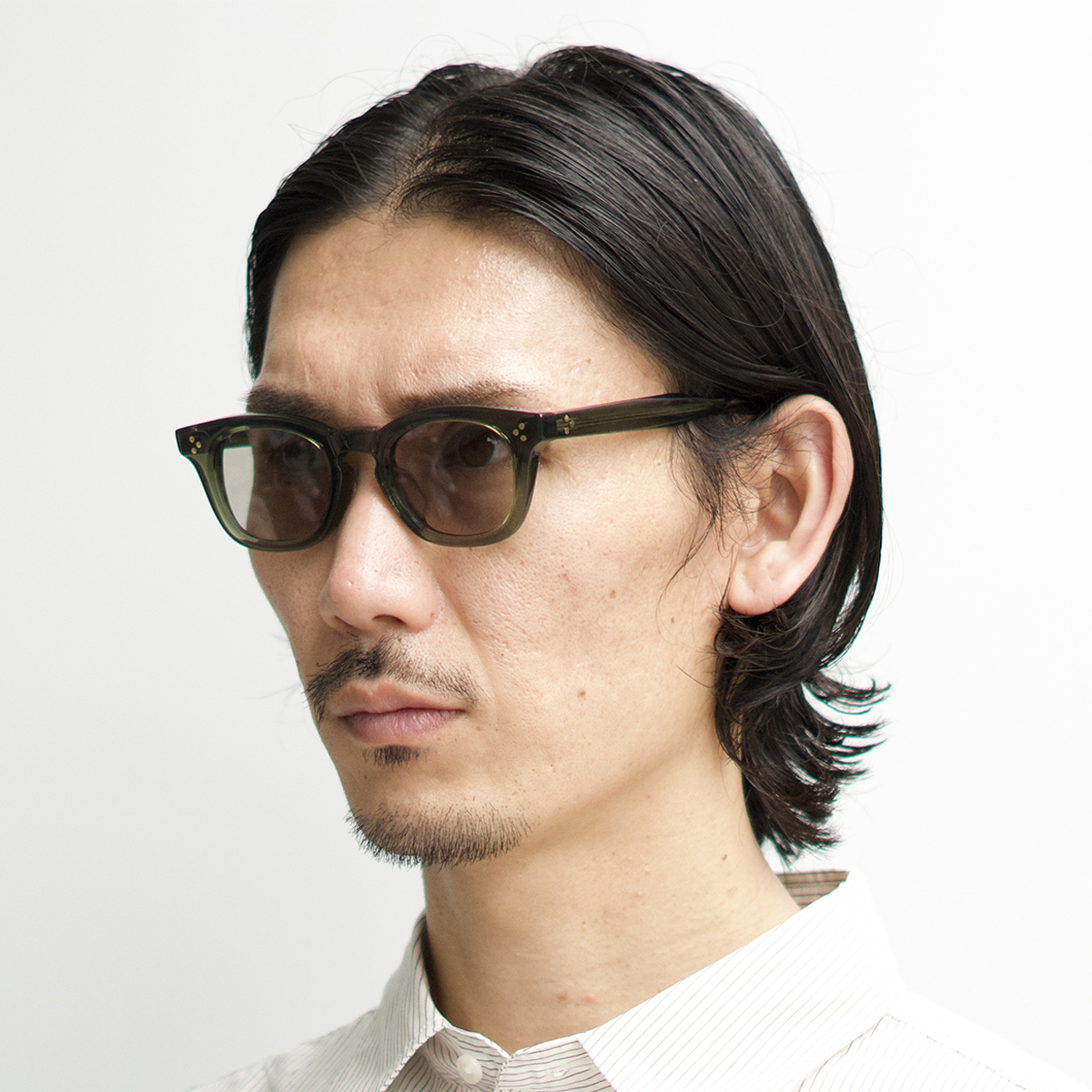 フロント・テンプル共に3PINカシメ止め・5バレル丁番を採用し、ビンテージフレームを再現する本格的な作りに仕上がってます。