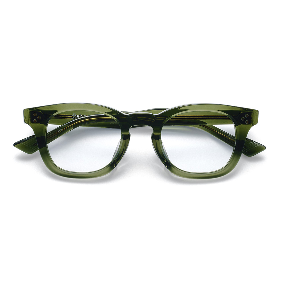 フロント・テンプル共に3PINカシメ止め・5バレル丁番を採用し、ビンテージフレームを再現する本格的な作りに仕上がってます。