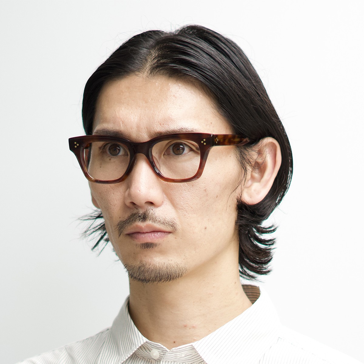 スクエアの要素も持たせたウェリントンのレンズシェイプはマニッシュな印象に。