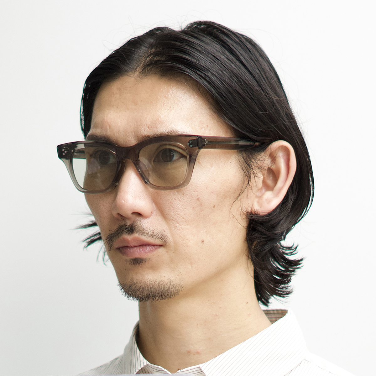 スクエアの要素も持たせたウェリントンのレンズシェイプはマニッシュな印象に。