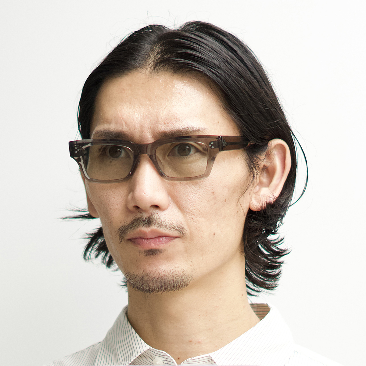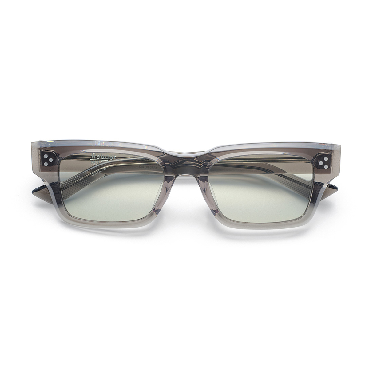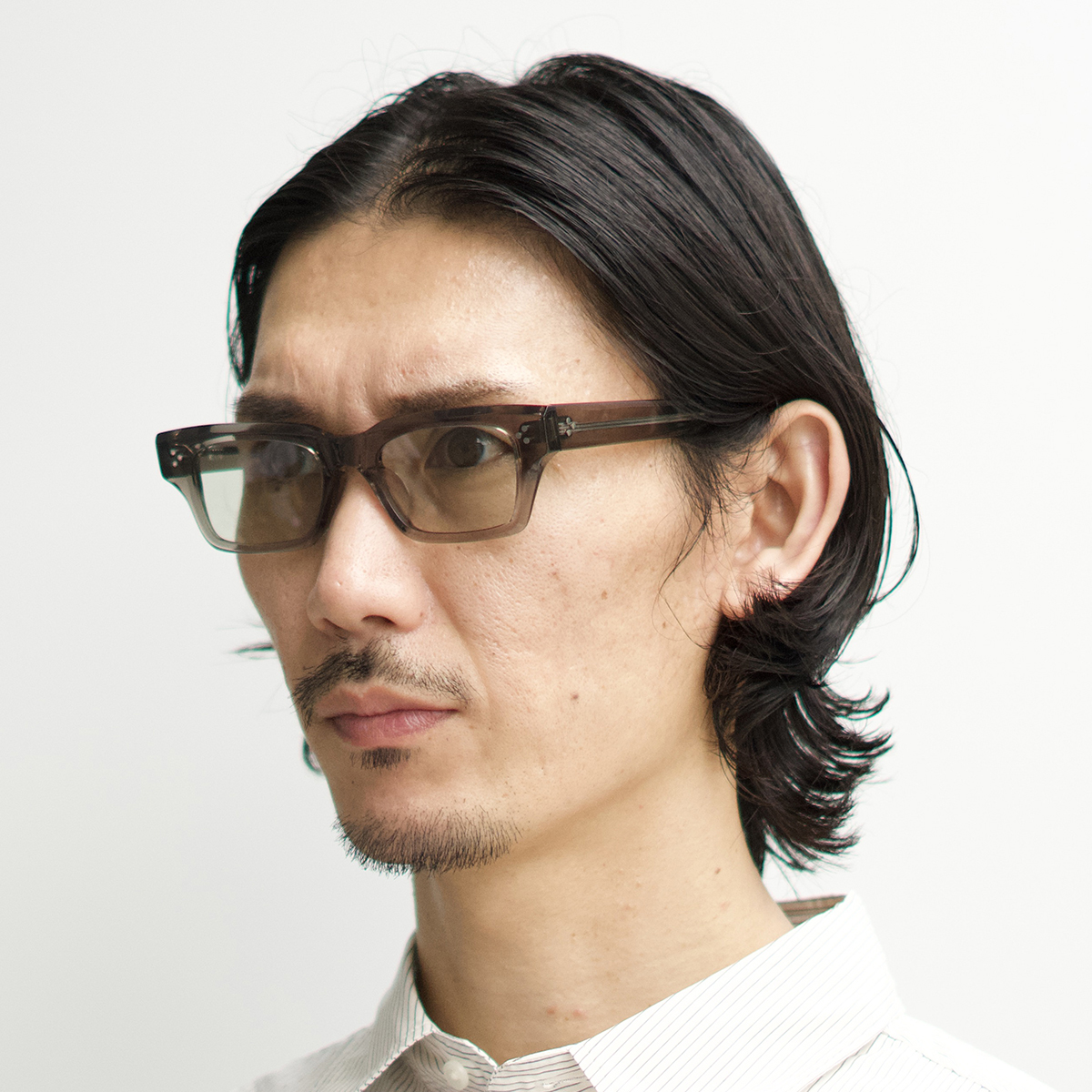 スクエアの要素も持たせたウェリントンのレンズシェイプはマニッシュな印象に。