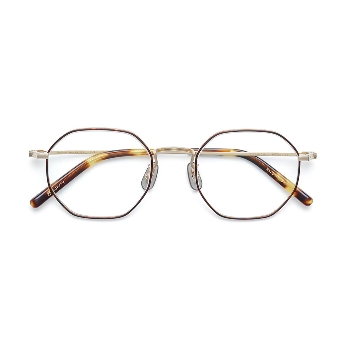 ライン入りの飾りリムを採用し、ブリッジとヨロイの彫金風ラインと連動させるようにデザインしました。