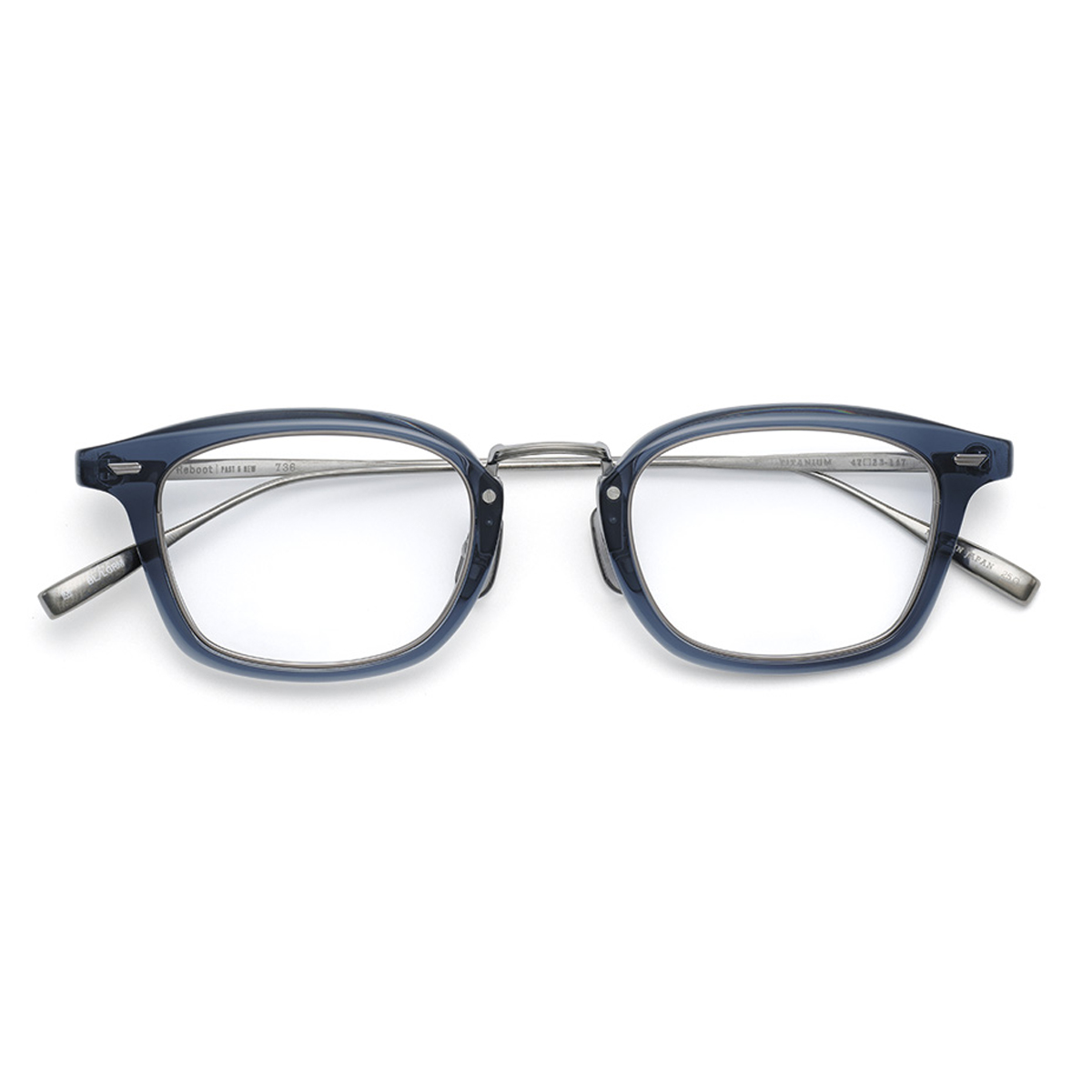1990年代後半のトレンドであるレクタングルのレンズシェイプが、現代のスタイリングにもマッチする仕上がりに。