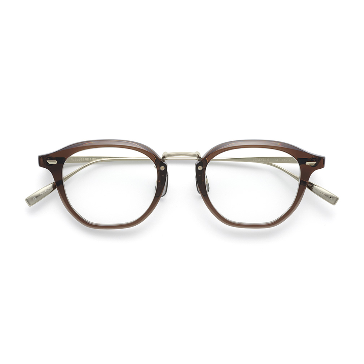 - ブリッジとリムの素材に変化をつけることで質感を高めたコンビネーションフレーム。