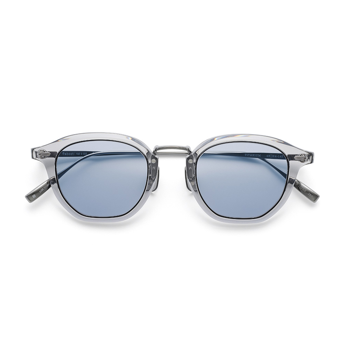 ウェリントンをベースとしたレンズシェイプは、レンズ下方で角を立てた”シモカク”を採用。