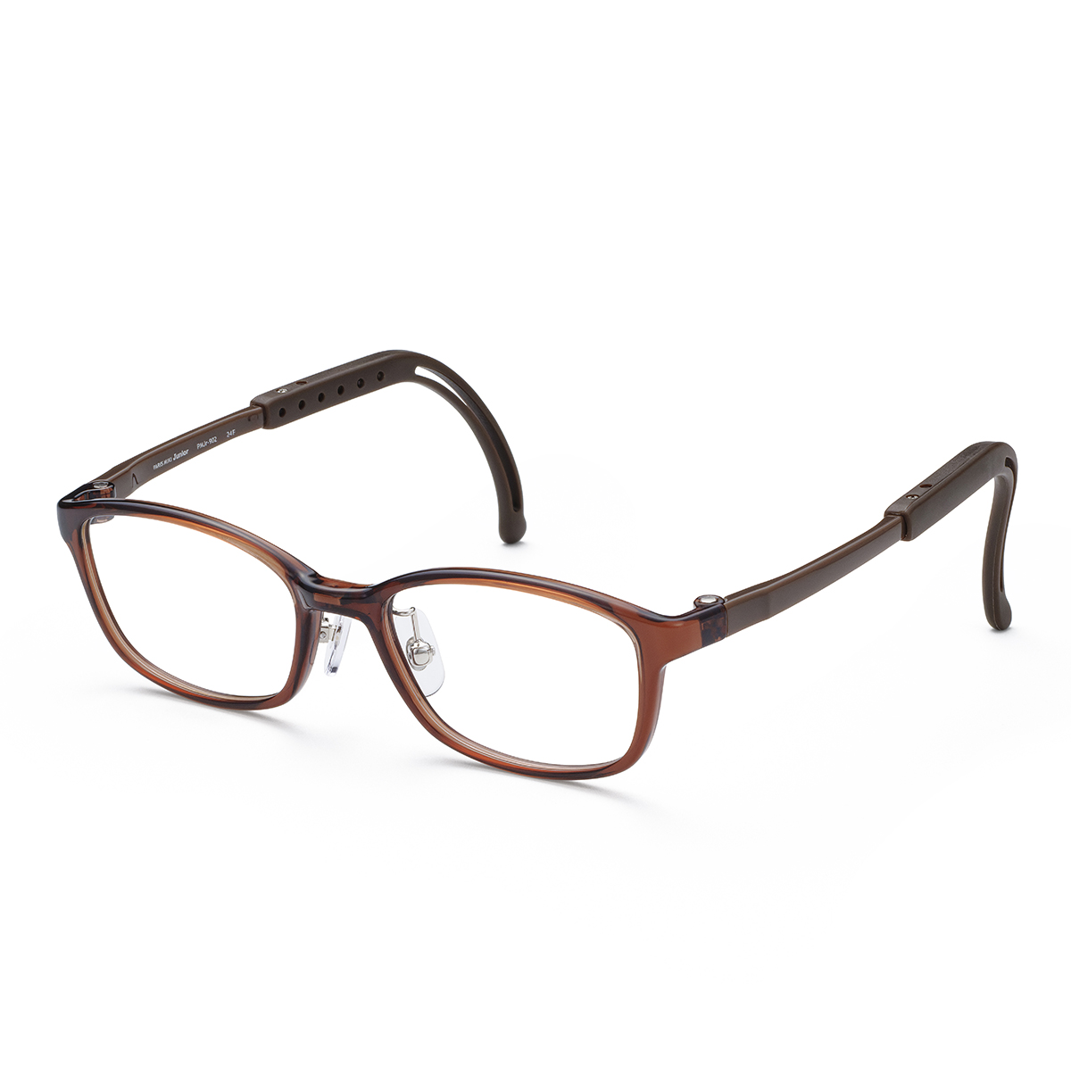 前枠もテンプルも超弾性樹脂でできた、スポーツなどアクティブなお子さまにおすすめのスクエア型フレーム。