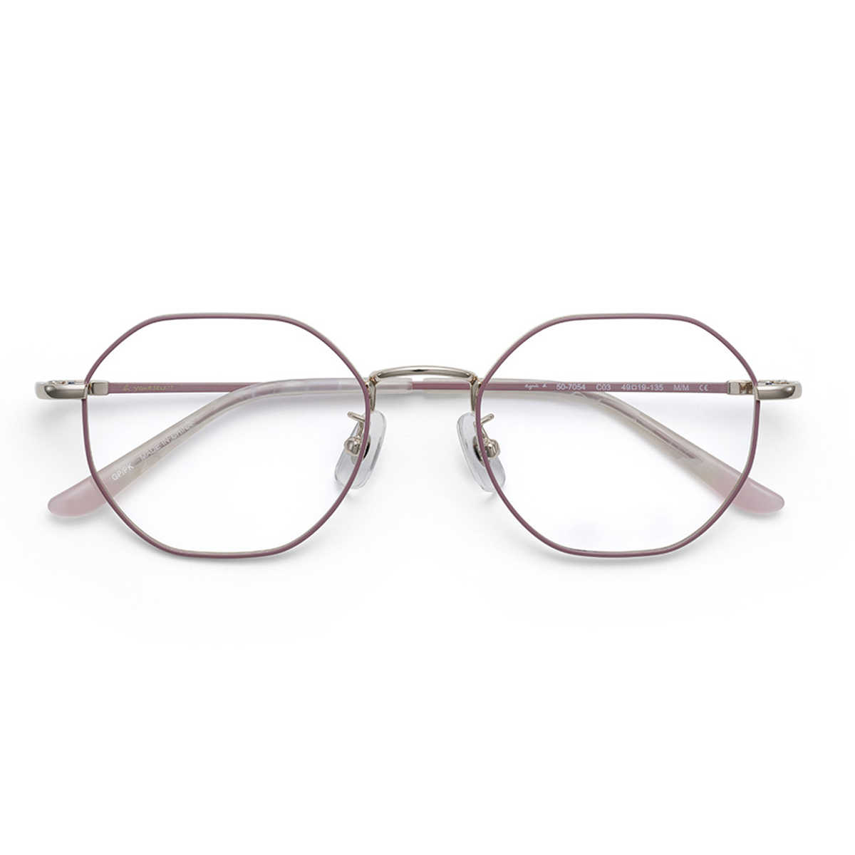 - ノーマルリムのシンプルなオクタゴン(8角形)のレンズシェイプを持つニューモデル。ブリッジを短めの設定にしており、より女性の顔に似合いやすいサイジングにまとめています。